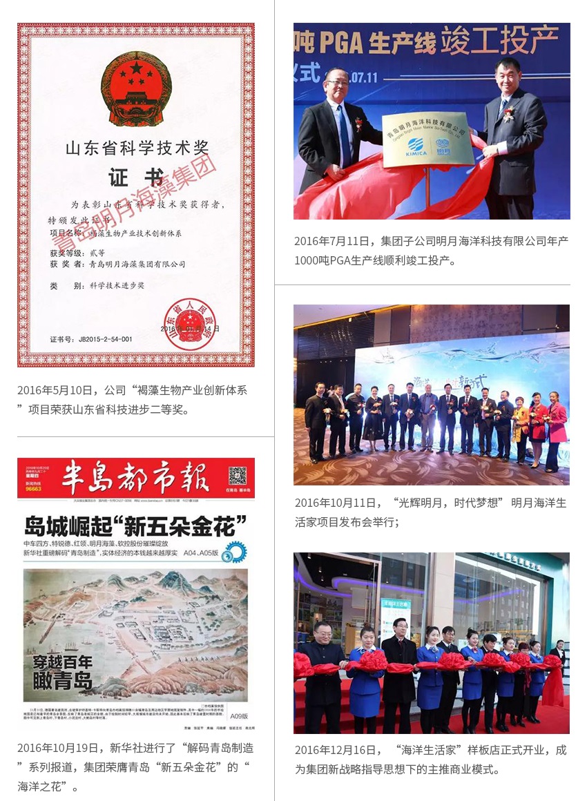 1985年10月,明月牌褐藻酸鈉被評為山東省優質產品。1987年,明月牌褐藻酸被評為山東省優質產品。