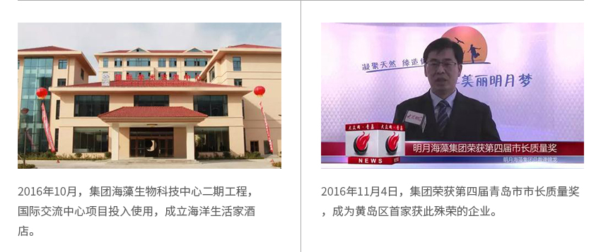 1月28日 明月海藻集團被授予"青島西海岸新區民營經濟發展十強企業"榮譽稱號。