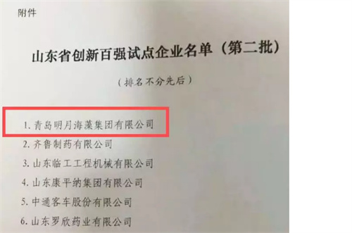 11月,明月海藻集團榮獲"山東省全員創新企業"稱號。