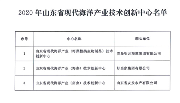 11月11日 山東省海洋局發布《關于2021年度山東省海洋科技創新獎獲獎成果的公告》,青島明月海藻集團榮獲2021年度山東省海洋科技創新獎產業創新發展類一等獎。